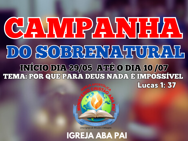 CAMPANHA DO SOBRENATURAL COM TEMA: PORQUE PARA DEUS NADA É IMPOSSÍVEL